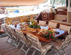 The AEGEAN SCHATZ is an unique classic motor sailing yacht providing the highest level of luxury and services combined with the latest technology. A piece of art built in 2006 with passion of highly experienced craftsmen. This sailing vessel has been designed to accommodate 10 passengers with en-suite facilities, giving the opportunity to live the dream cruising throughout the Aegean Sea, the Ionian Sea and all over the Mediterranean Sea. English info & booking: +30 693 8639648 e-mails: charter @ CRETAdeluxe.com aegeanschatz @ CRETAdeluxe.com